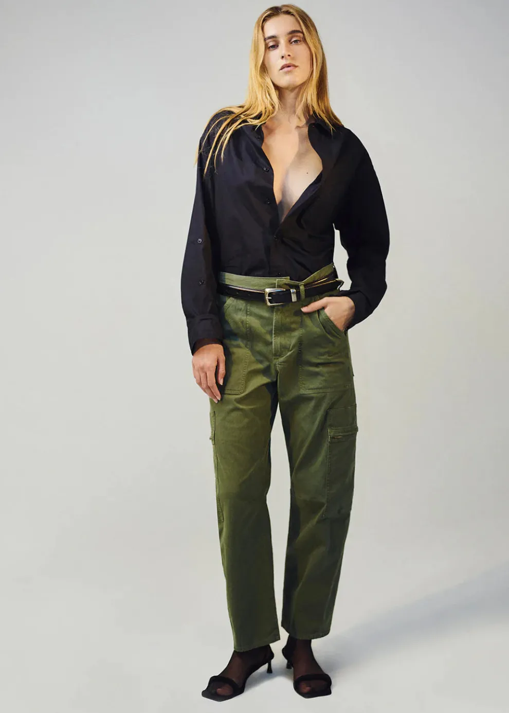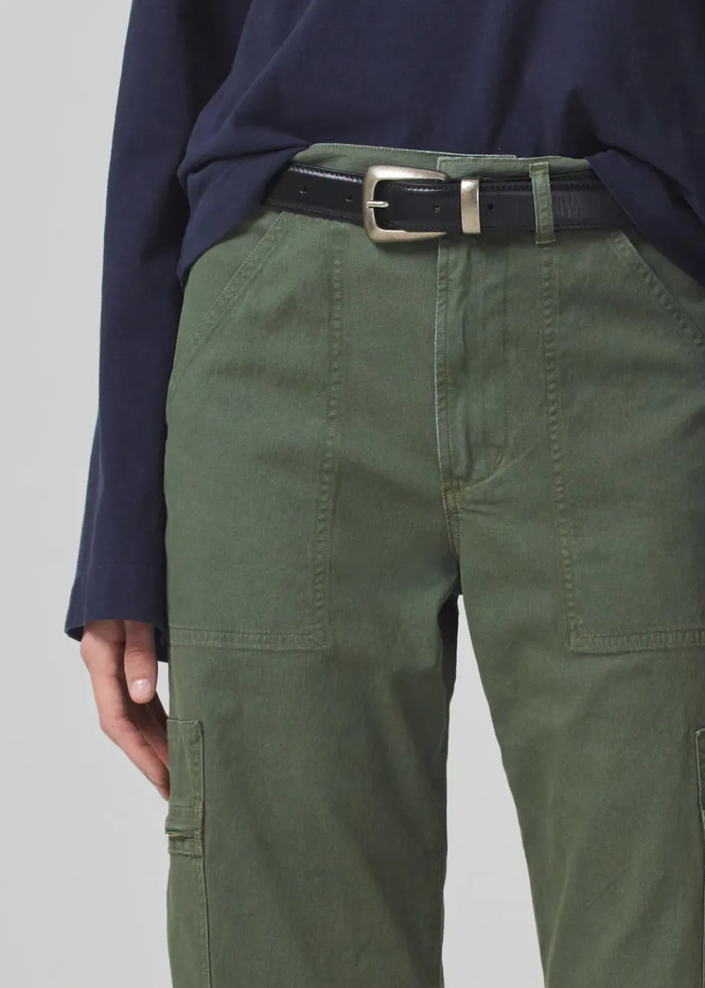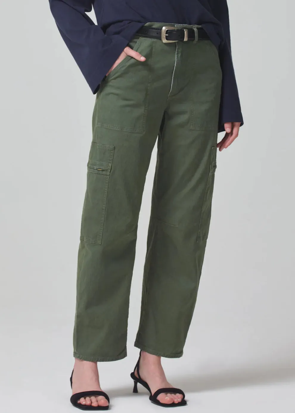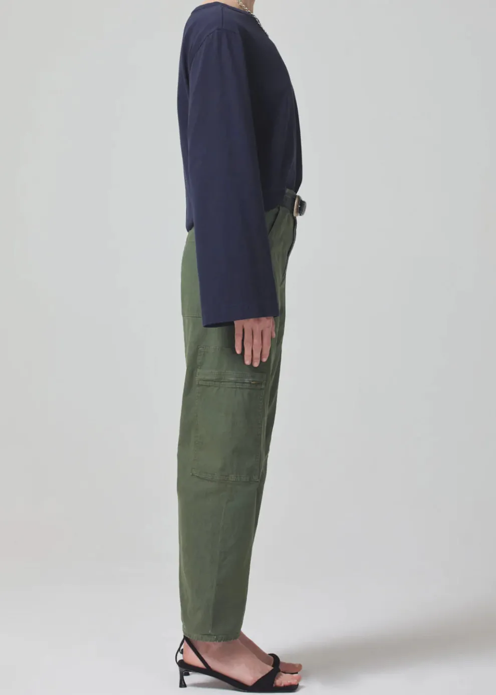 Le pantalon Marcelle présente une taille basse avec des détails inspirés du cargo et une jambe droite décontractée qui se resserre à la cheville. Confectionné dans un twill respirant mais rigide, non extensible, pour un port toute la journée. Associez-le à des talons ou des baskets selon votre style.