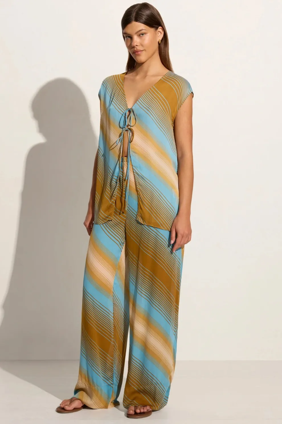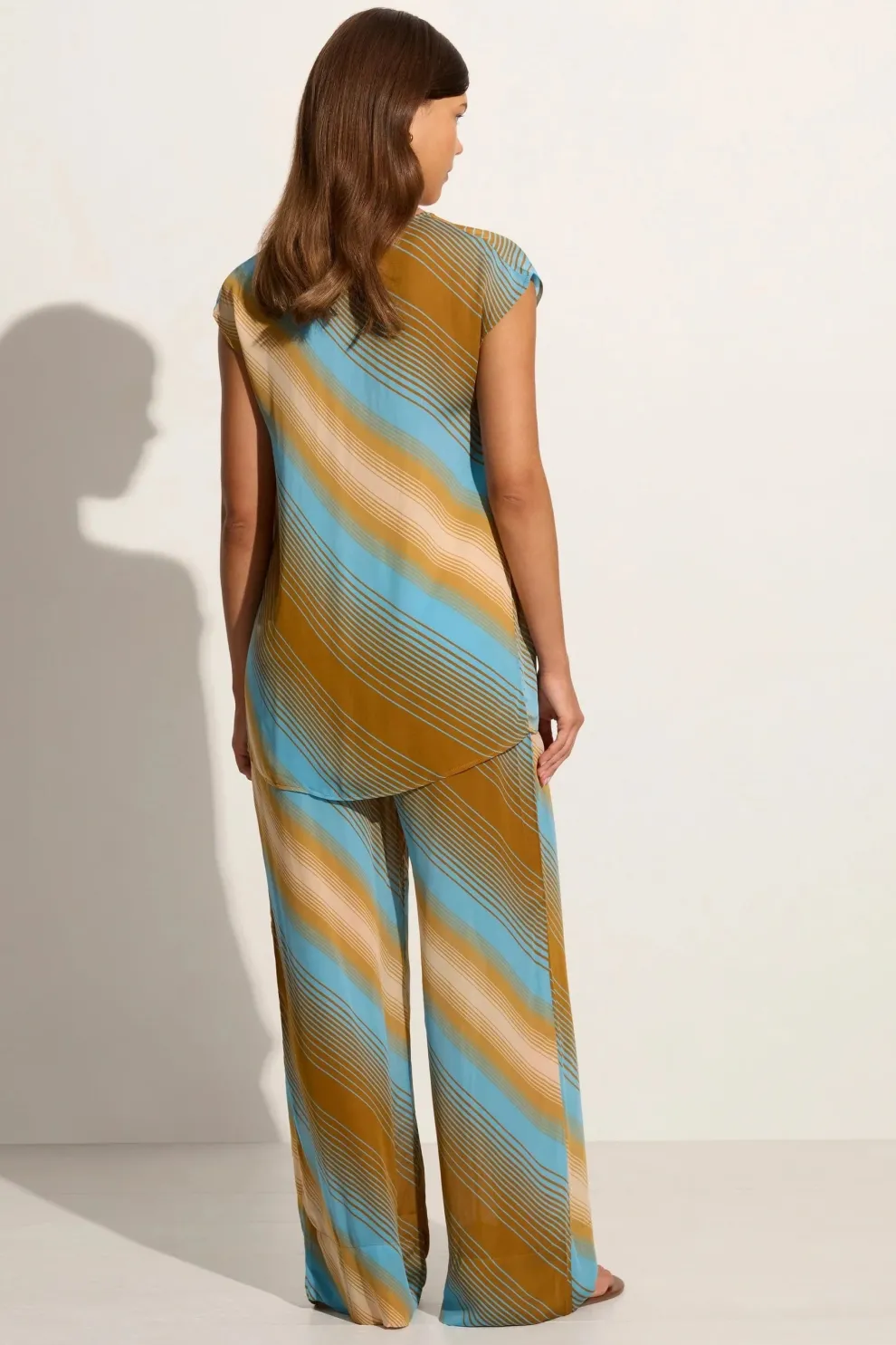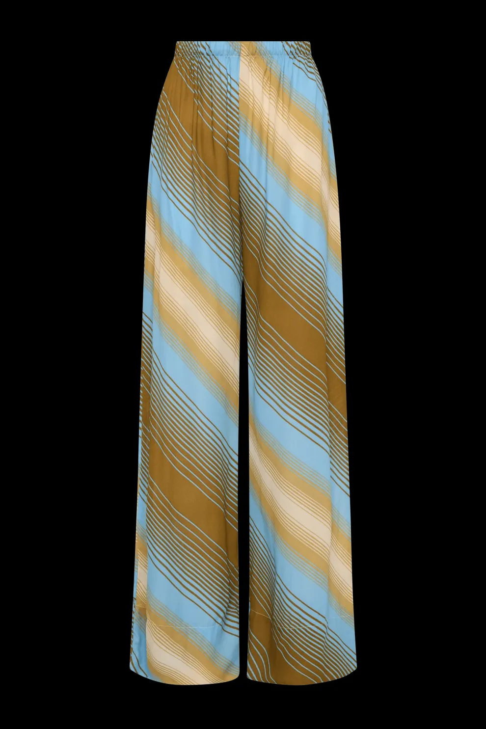 Dans un georgette de rayonne léger et semi-transparent, le pantalon Gorges à rayures Cervia offre une silhouette décontractée conçue avec une taille mi-haute, une coupe large et une taille élastique pour un port facile.