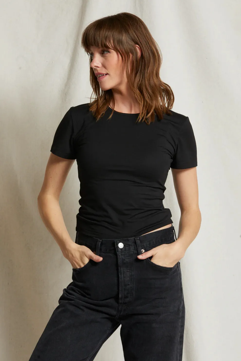 Si vous cherchez votre prochain t-shirt, le voici. Coupé dans un jersey de luxe des années 90, ce t-shirt moulant épouse vos courbes là où il faut. Considérez-le comme une deuxième peau, tout en offrant mouvement et confort.