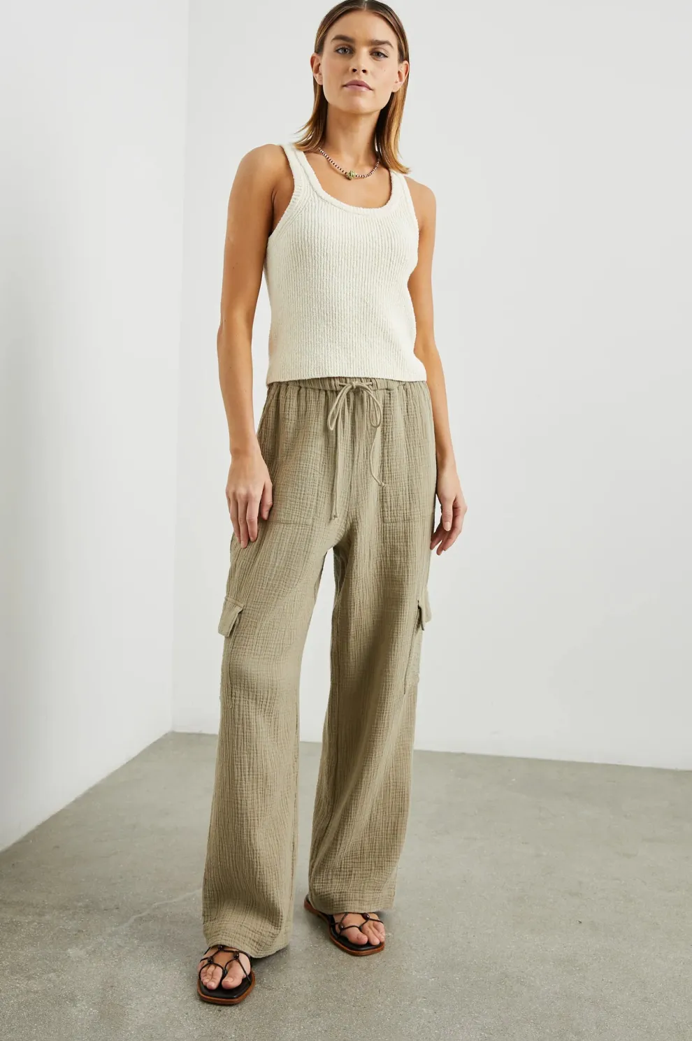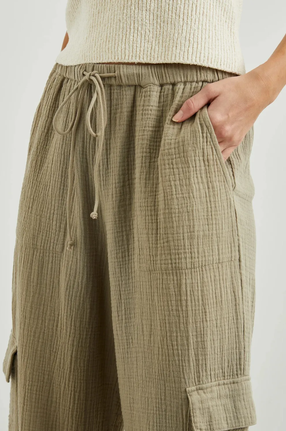 Fabriqué à partir d’une double gaze épaisse, le pantalon Christiano présente une coupe à jambes larges et une taille à cordon pour un confort tout au long de la saison. Associez-le à un débardeur ou un t-shirt pour un look décontracté.