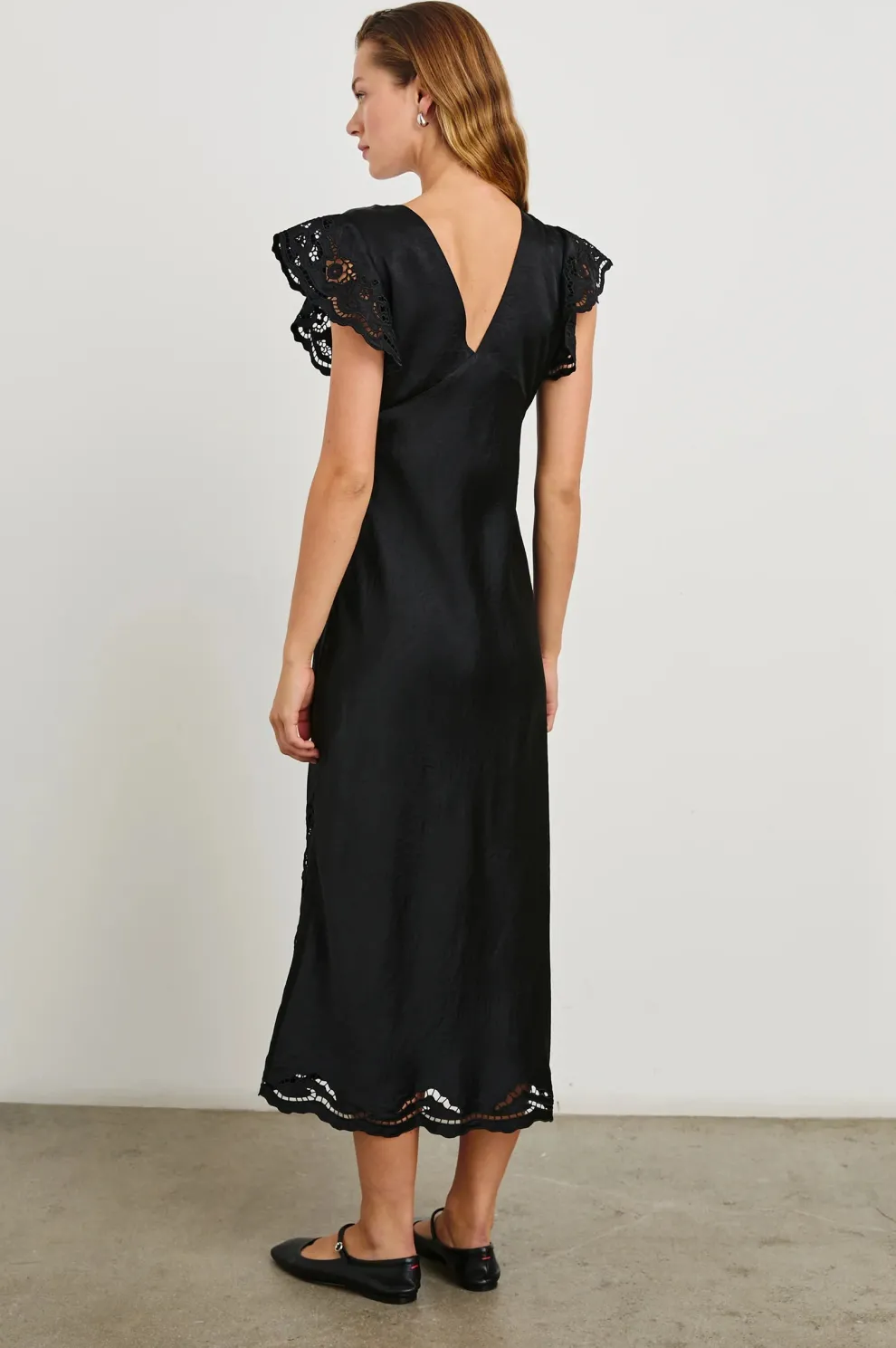 Ajoutez une touche de romantisme à votre garde-robe avec la robe Mckenna, une pièce d’inspiration nuisette des plus exquises. Confectionnée dans un satin épais et luxueux, cette robe est parfaite pour les occasions spéciales. Dotée d’un décolleté plongeant en V et de délicates bordures en dentelle le long de l’ourlet et des manches papillon, vous ferez une entrée remarquée partout où vous irez.