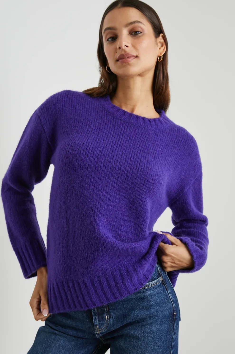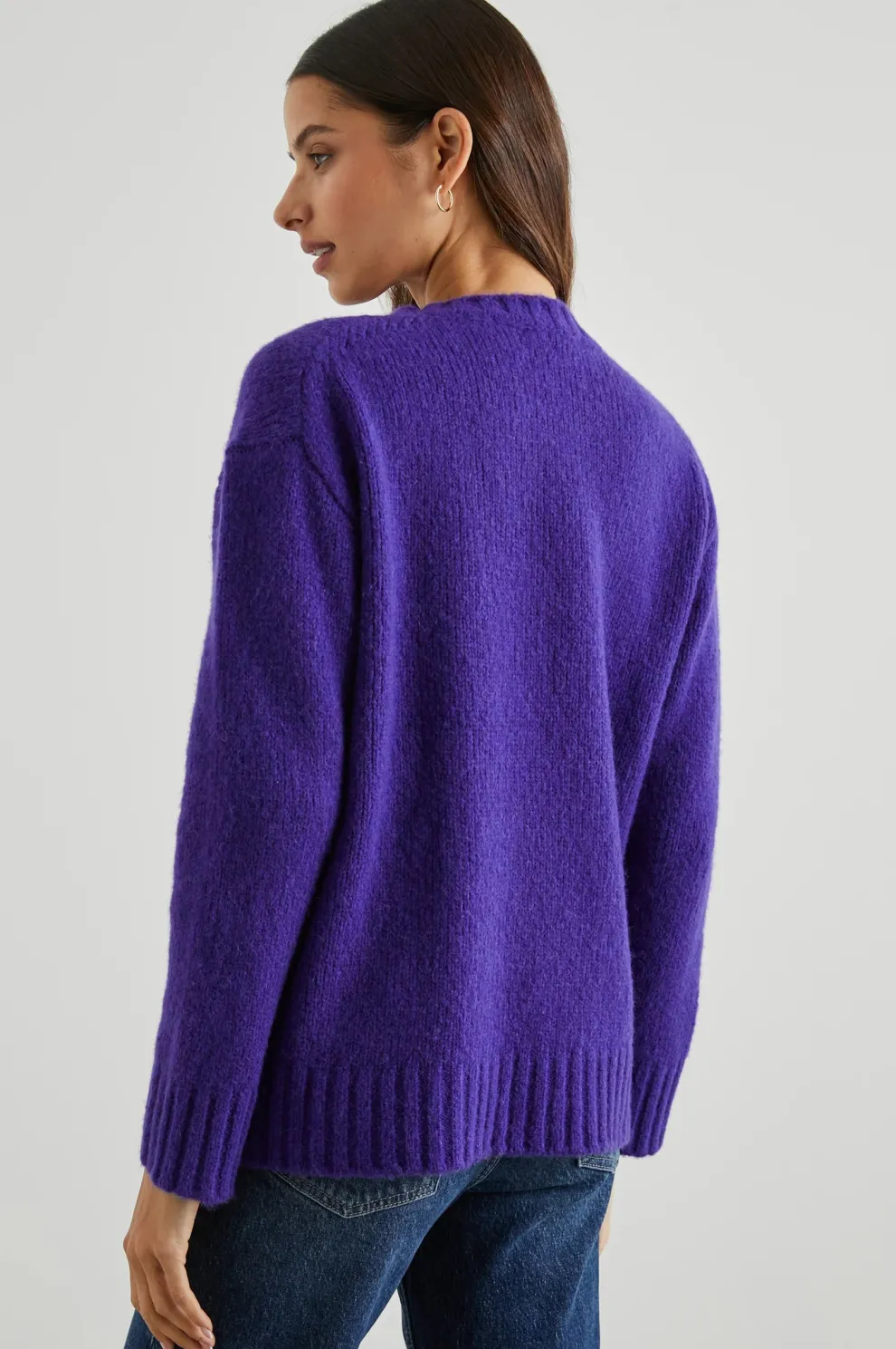 Purple is becoming the new trendy color, so show off your taste for color with the Olivia. This classic garment is made from a premium alpaca wool blend, offering exceptional softness. It is distinguished by its dropped shoulder and its finishes at the collar, bottom hem and sleeves.