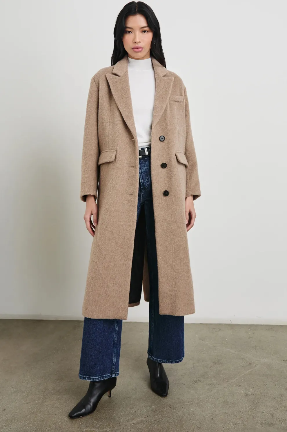 Inspiré de la mode masculine, le manteau Opera est confectionné dans un mélange de laine et d’alpaga, offrant une texture ultra-douce et un toucher unique. Doté de poches intérieures et entièrement doublé pour une chaleur supplémentaire, ce manteau deviendra un incontournable de votre garde-robe.