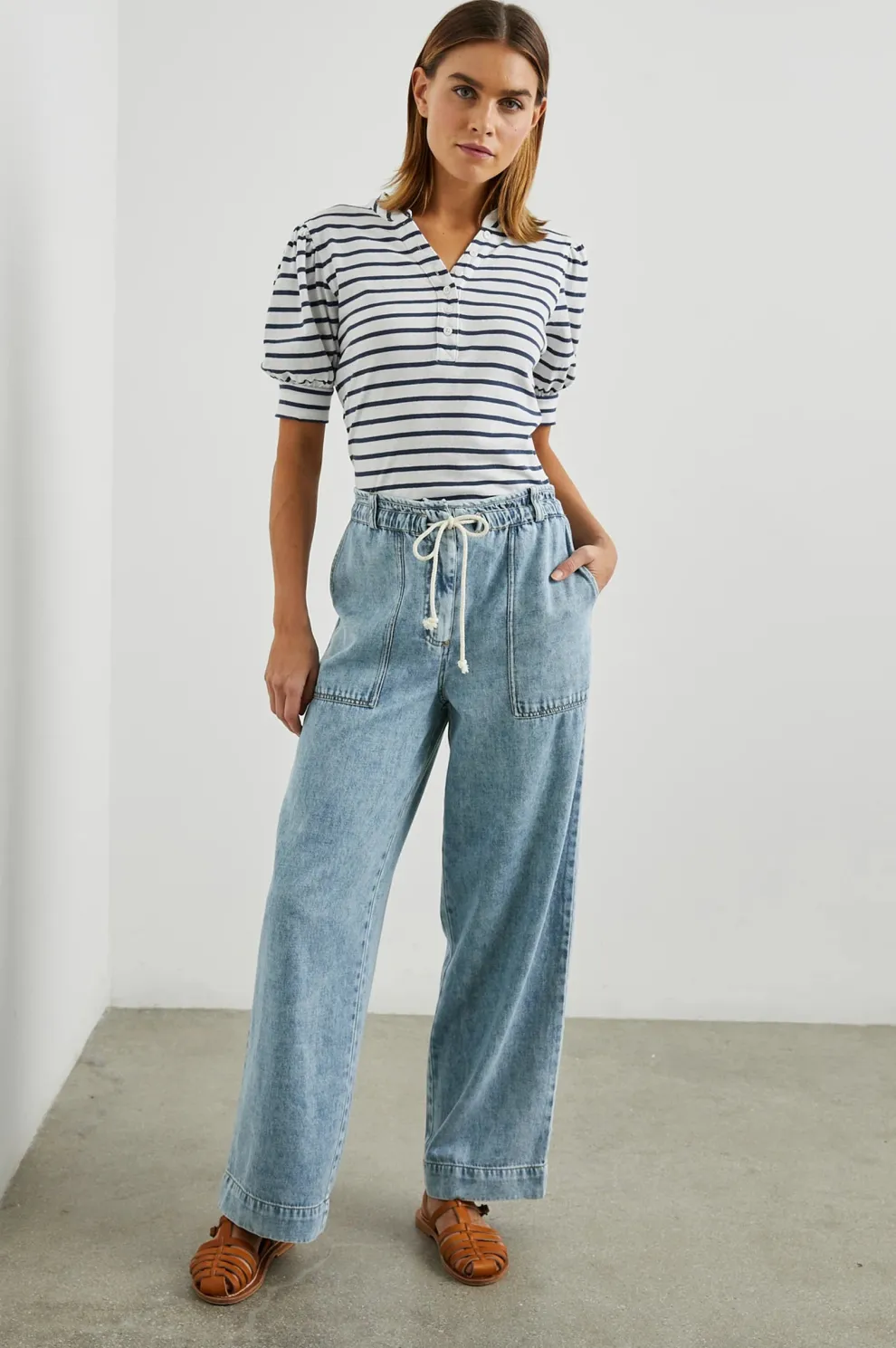 Mi-denim, mi-cargo, le pantalon Ryan présente une coupe à jambes larges et une taille à cordon pour un confort tout au long de la saison. Associez-le à un débardeur, un pull ou un t-shirt pour un look décontracté mais raffiné.
