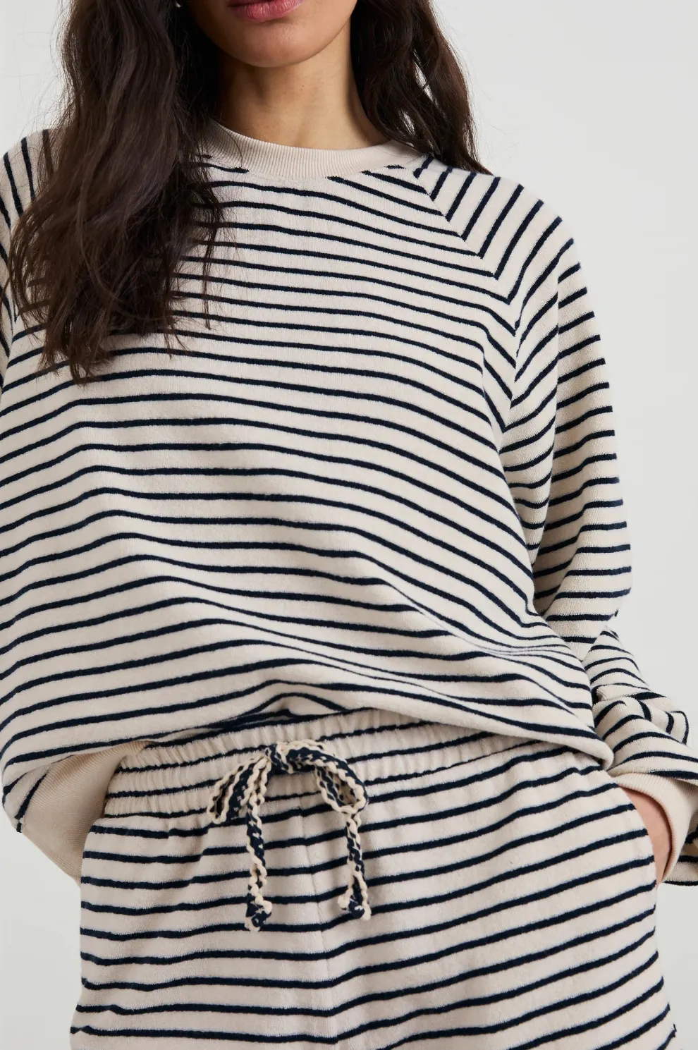 Affichez vos rayures avec le Theron, un sweat-shirt en éponge ultra-doux. Doté de poignets et d’un ourlet côtelés contrastants et d’un imprimé d’inspiration nautique, il deviendra votre incontournable pour les brunchs et les soirées autour d’un feu de camp.