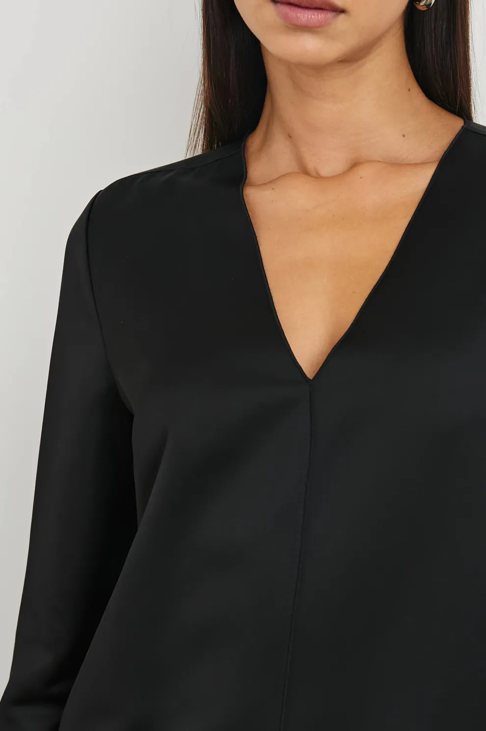 La robe Victoria est confectionnée dans un crêpe à dos satin de poids plus lourd, avec des coutures brutes aux bords à bourdon, ainsi que des fentes aux manches et sur les côtés. Portez-la par-dessus votre pantalon ajusté préféré ou seule avec des collants.