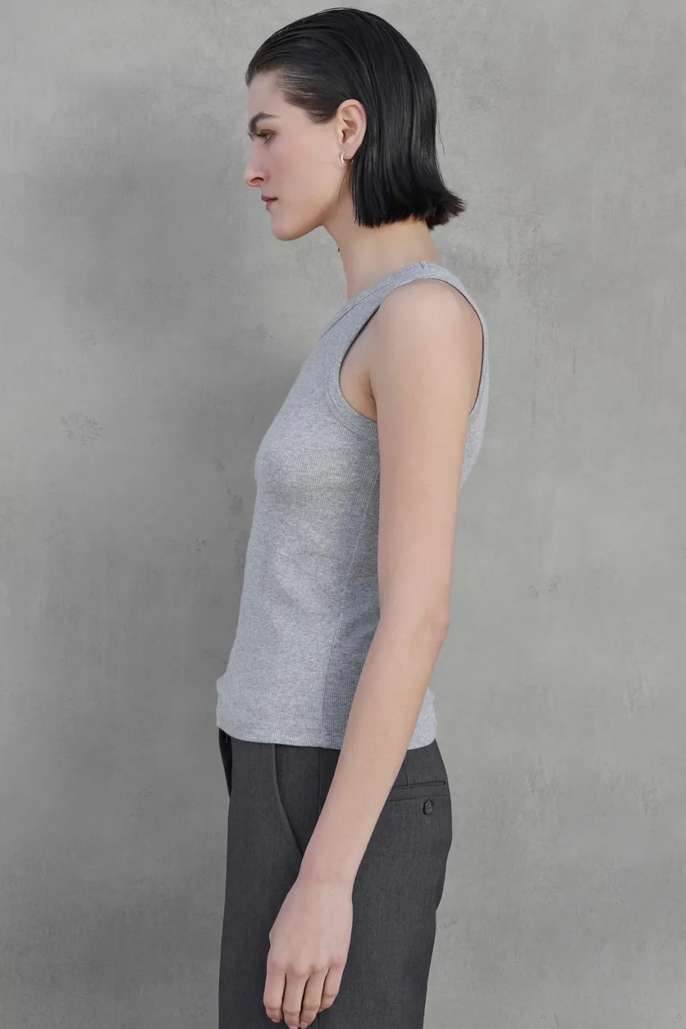 Confectionné dans un mélange côtelé de coton et modal de poids élevé, ce débardeur offre juste ce qu’il faut d’élasticité pour épouser parfaitement le corps. Chic, simple et polyvalent, il est un incontournable de votre garde-robe capsule.
