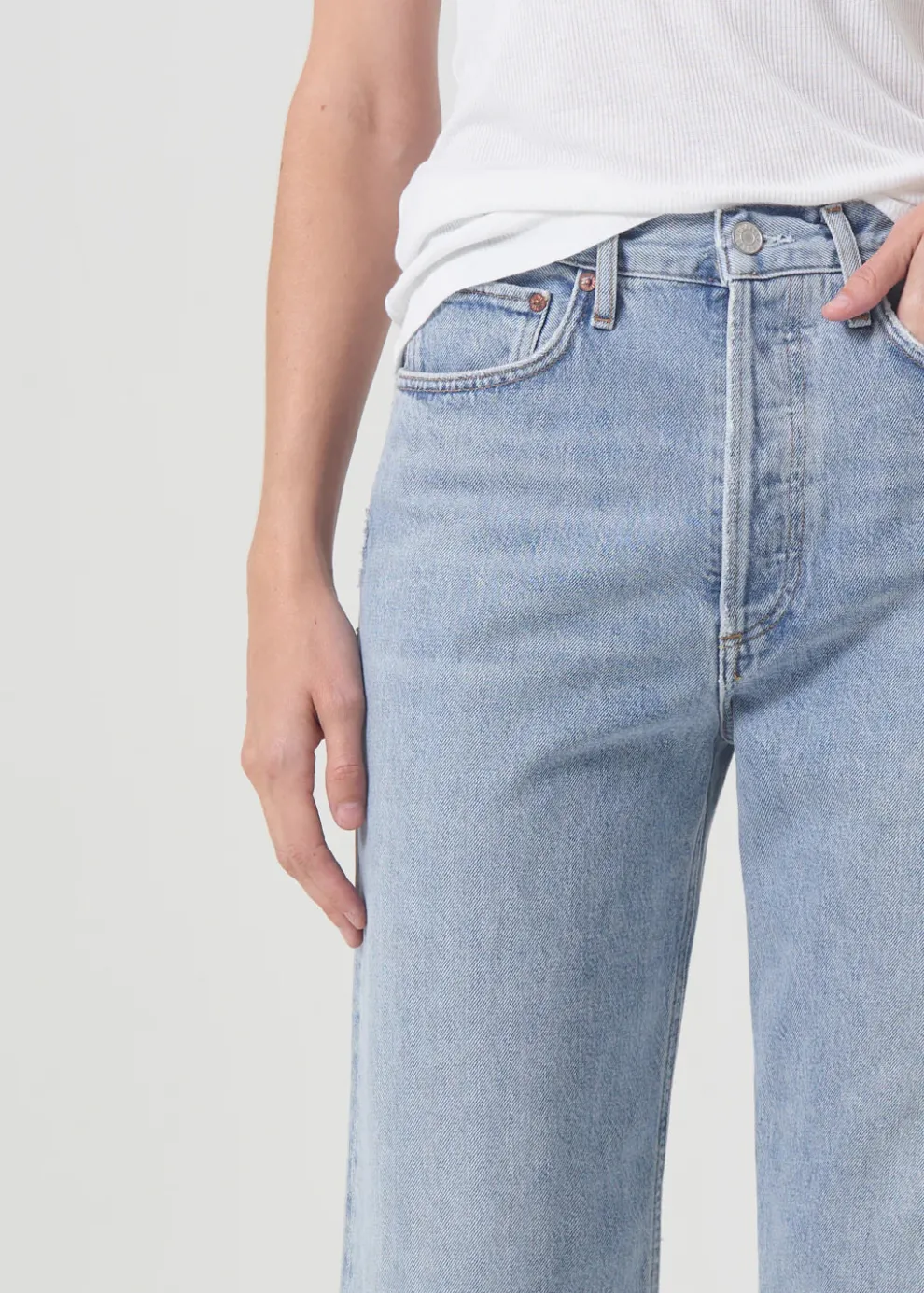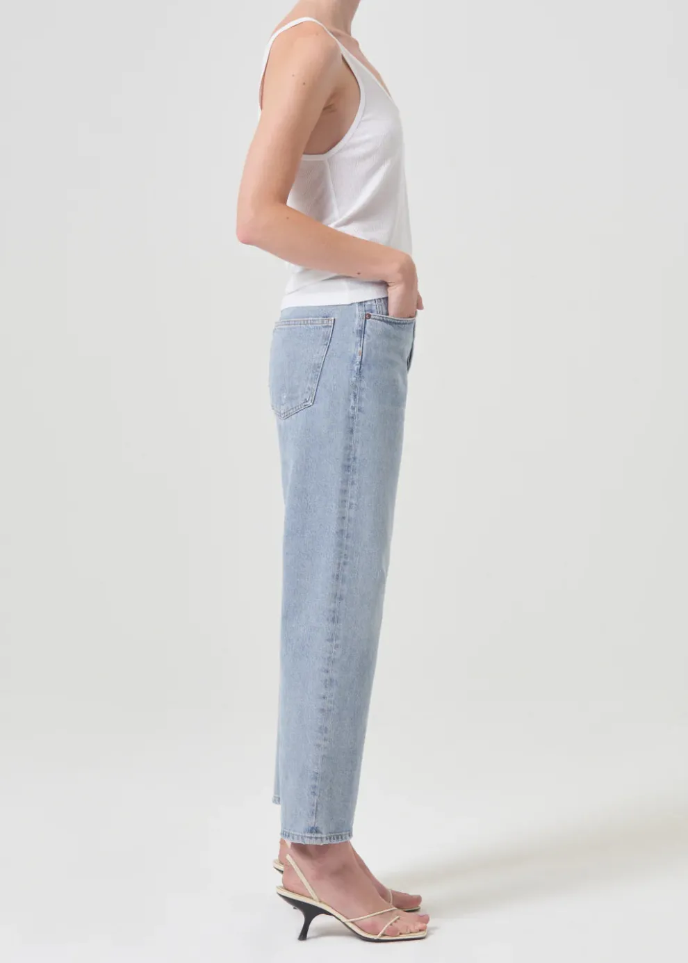 Le jean 90’s à taille moyenne inspiré de la décennie est conçu pour être porté de manière décontractée à la taille, avec une coupe facile au niveau des hanches et des jambes droites classiques et amples. Associez-le à tout et à n’importe quoi pour un style polyvalent.