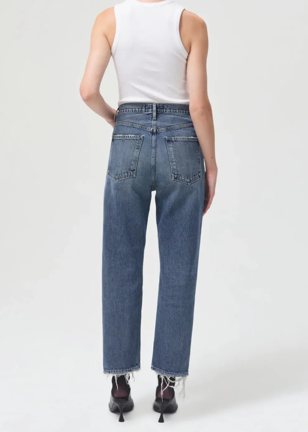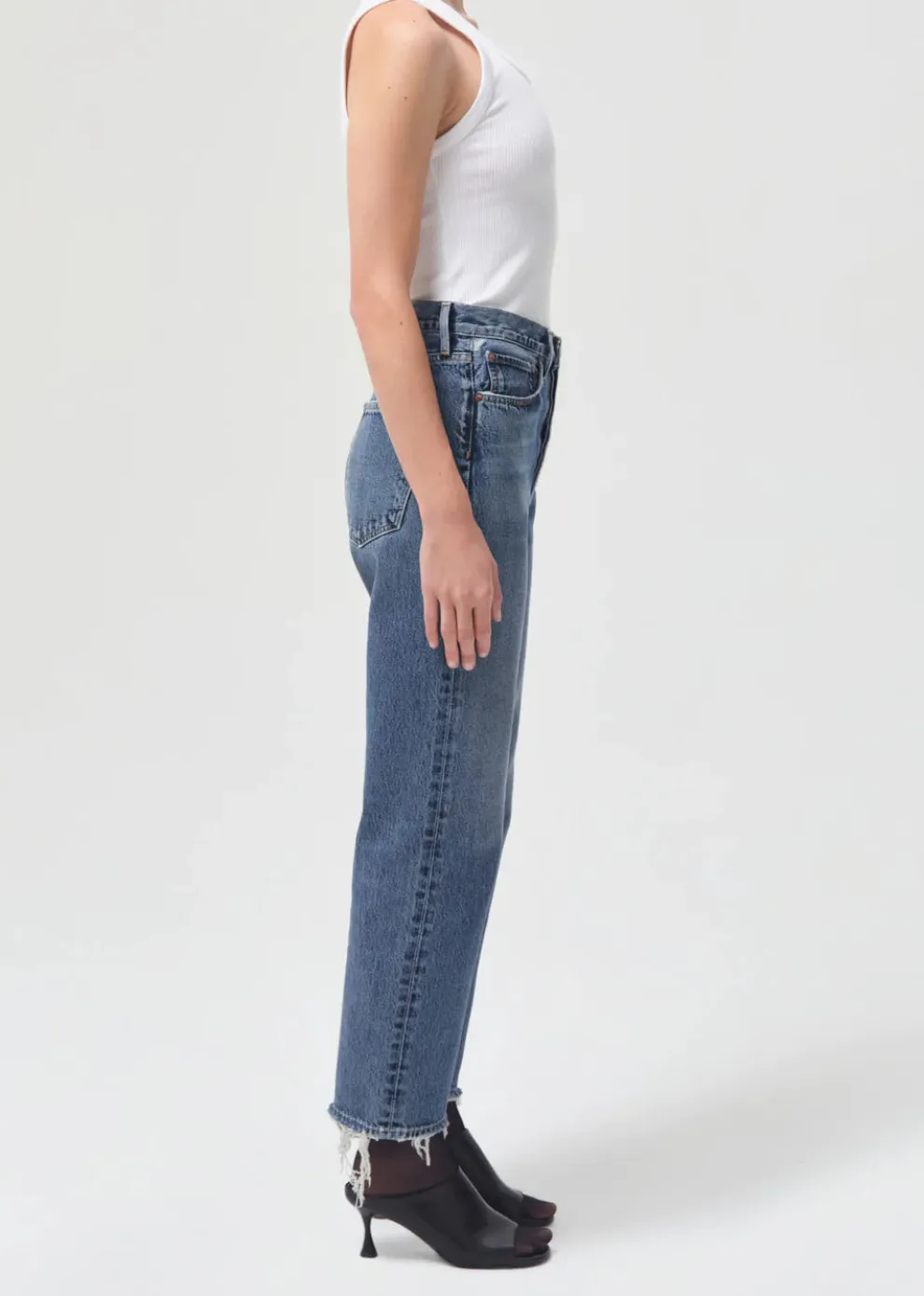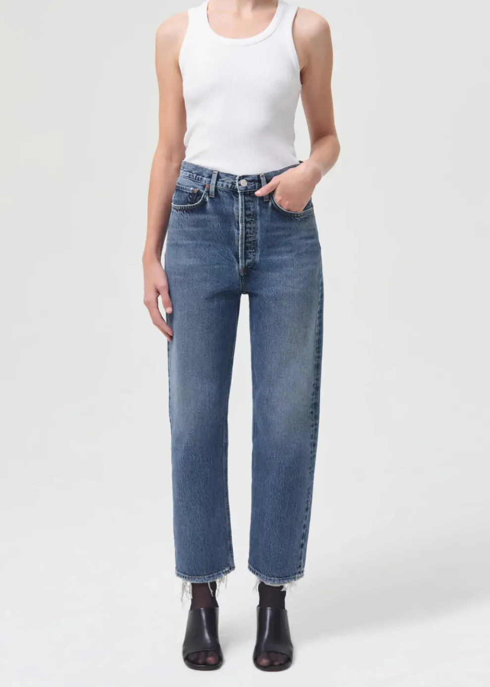 Iconic jeans from the 90s in a shorter version. This decade-inspired mid-rise is designed to be relaxed through the waist with a relaxed fit through the leg. Wear it with a tank top, a bodysuit or an elegant shirt.