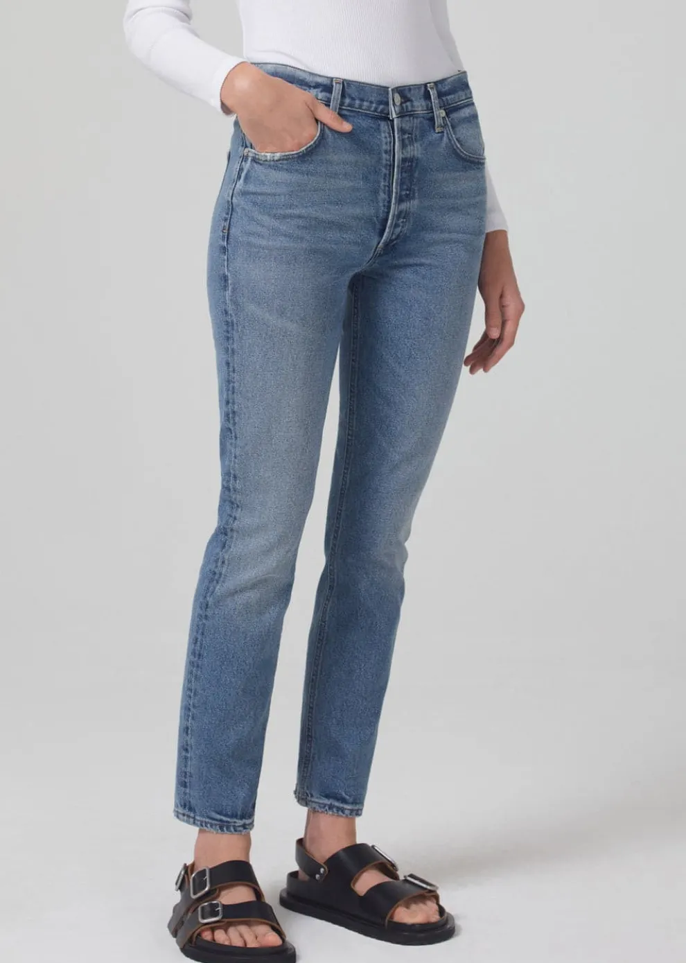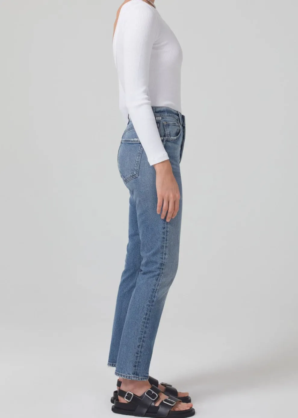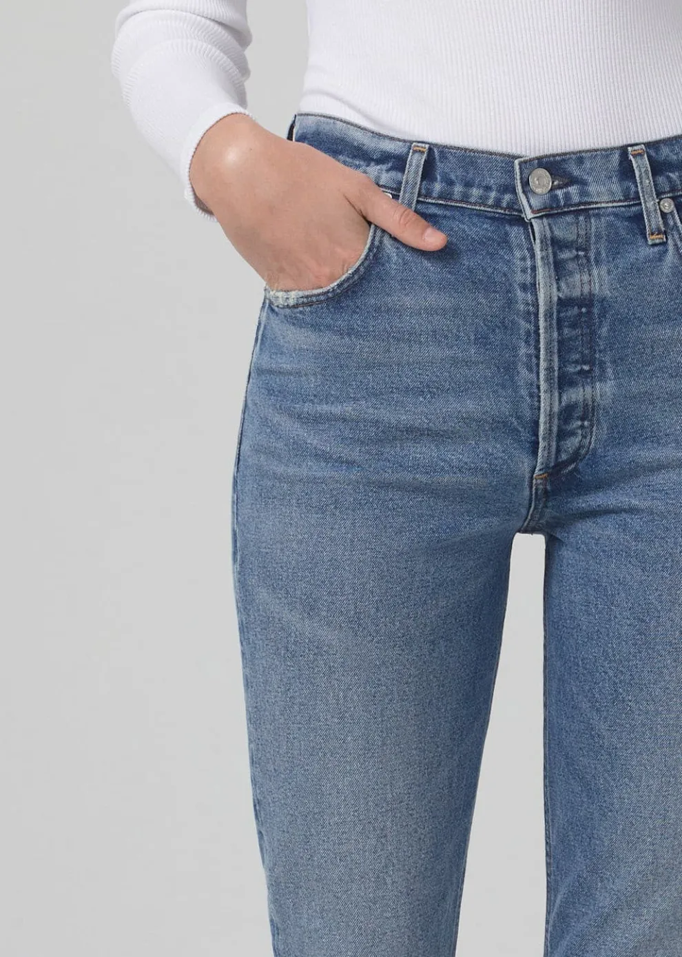 A cut inspired by the 90s with.Designed with a flattering high waist and classic cropped straight leg.