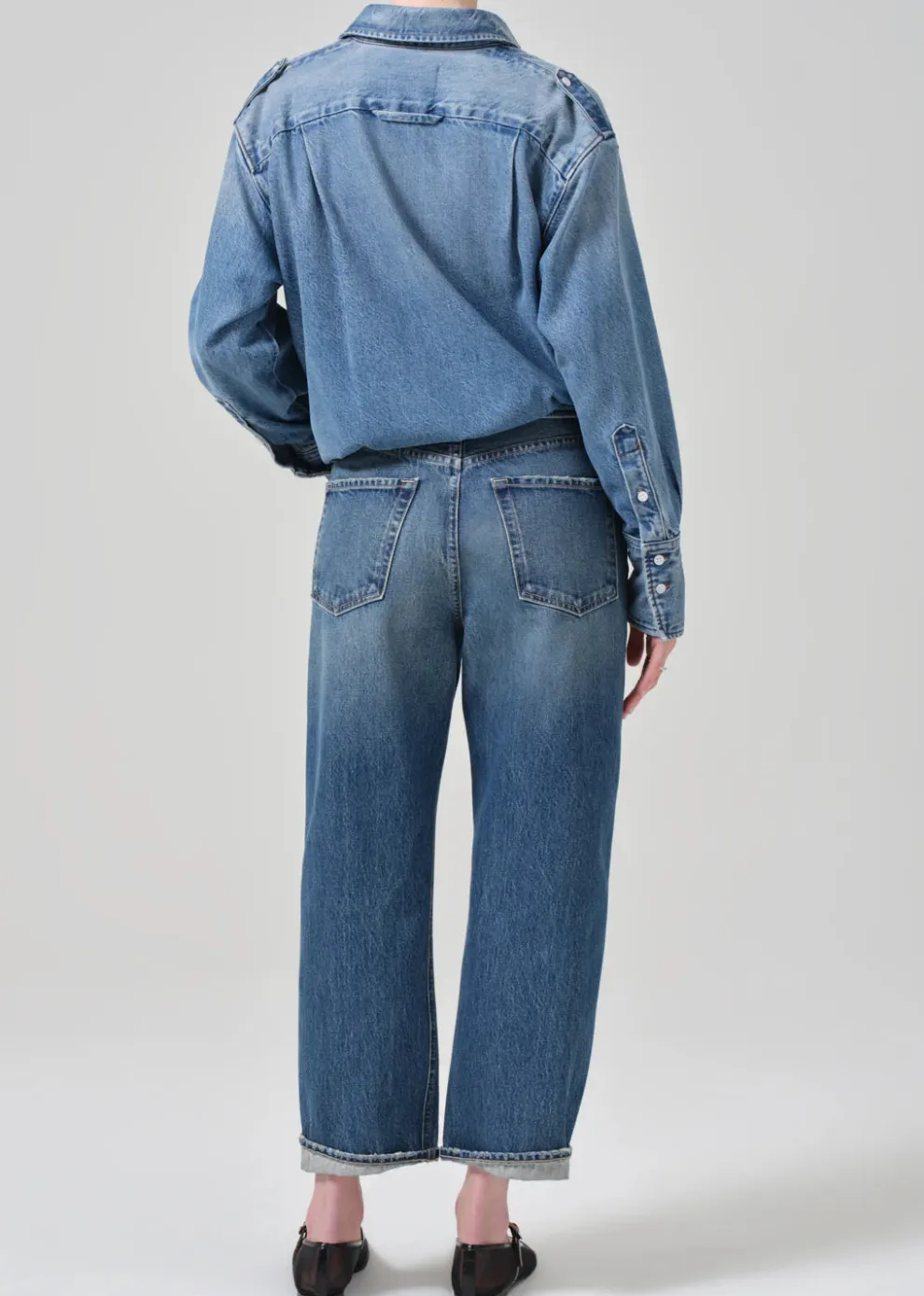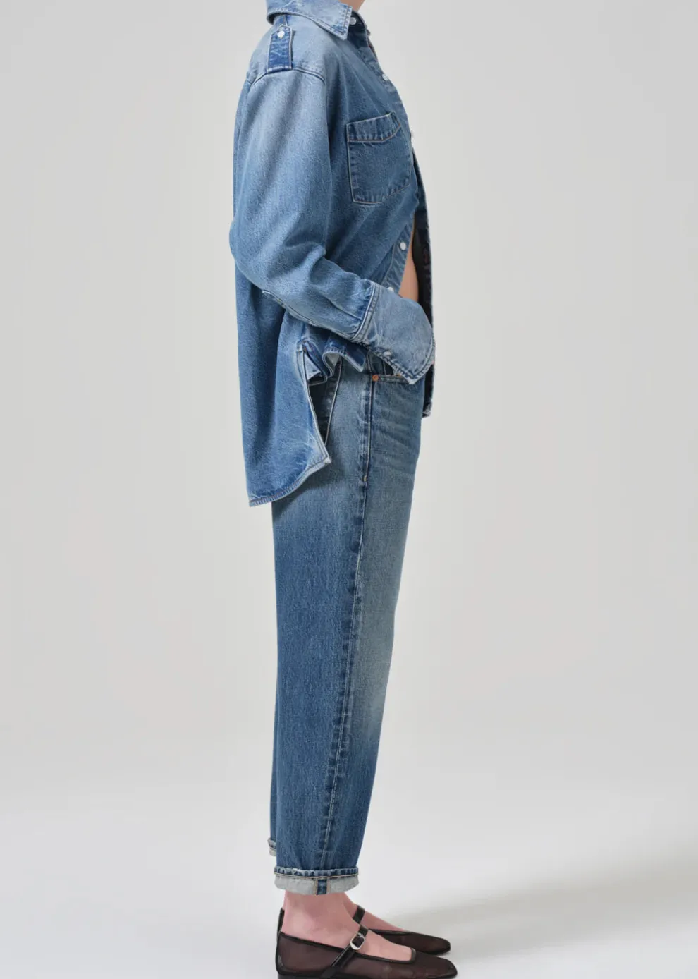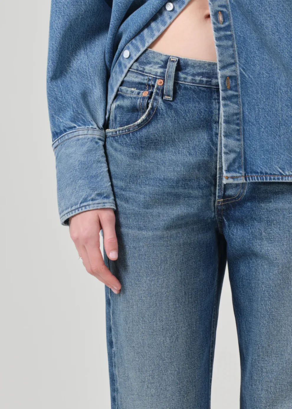 Conçu pour être porté bas sur les hanches, le Dahlia présente une jambe vintage décontractée qui se resserre légèrement vers la cheville. Terminé avec un charmant ourlet roulé irrégulier.