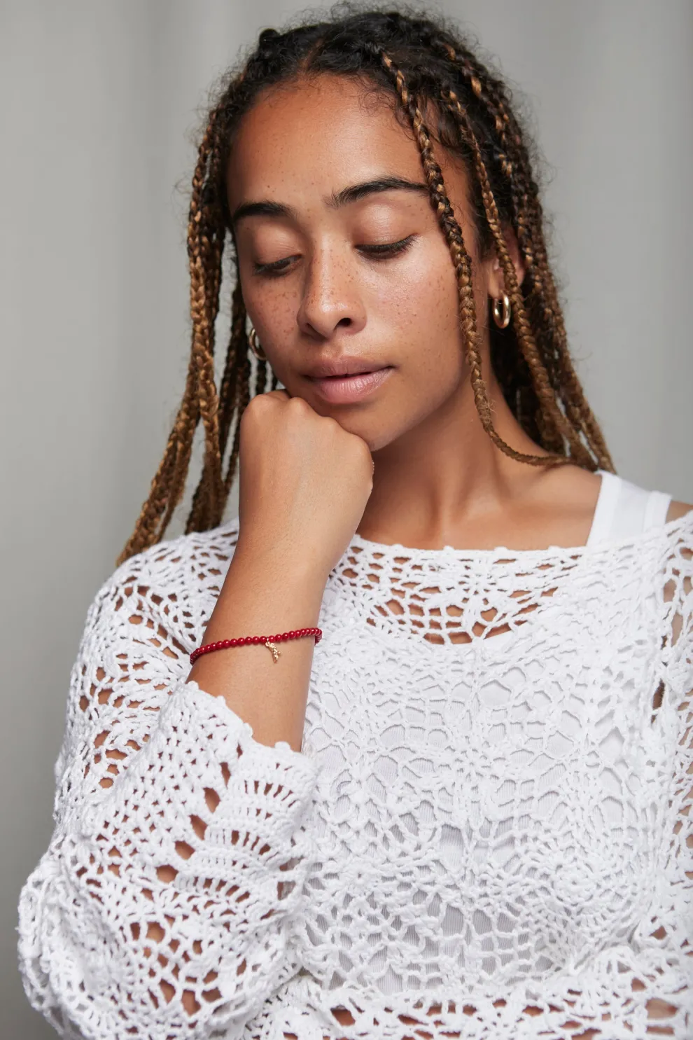Elastic bracelet 6″ in Bamboo Coral beads