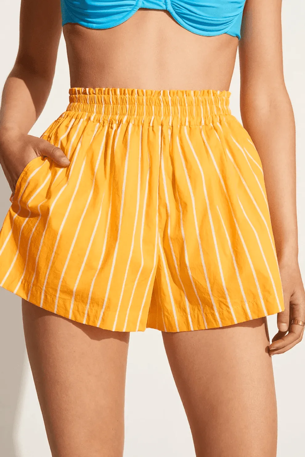 – High-waisted shorts in organic cotton poplin