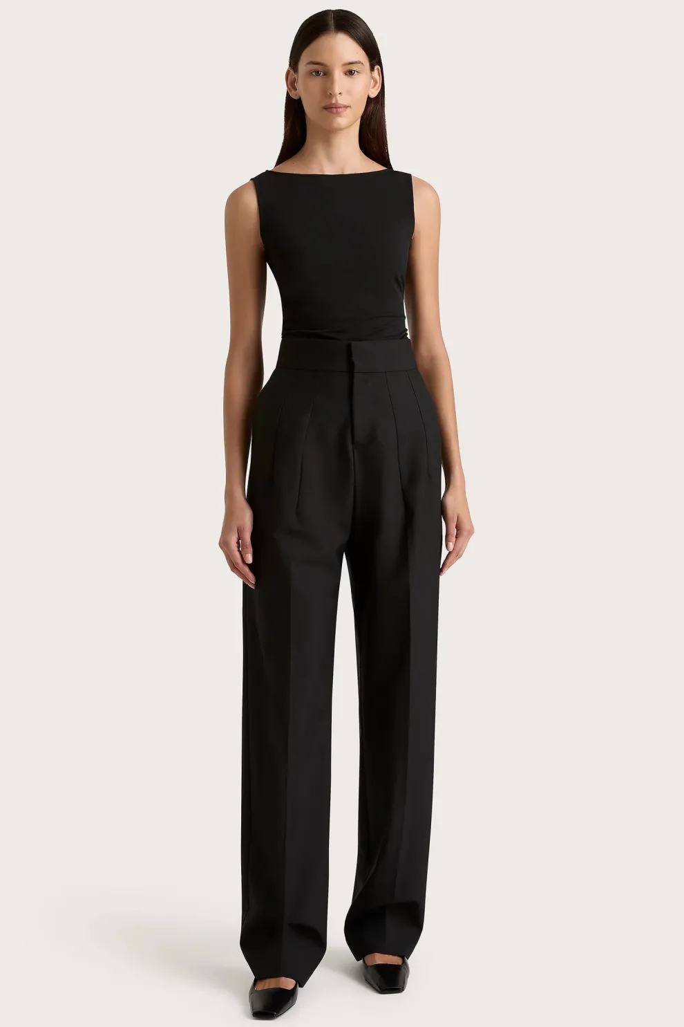 Un haut ajusté sans manches avec un décolleté bateau. Conçu en jersey texturé, il est luxueux au toucher tout en étant doux et extensible. Avec un léger ruché autour de l’ourlet, il se glisse parfaitement dans un pantalon classique pour une approche sophistiquée et moderne.