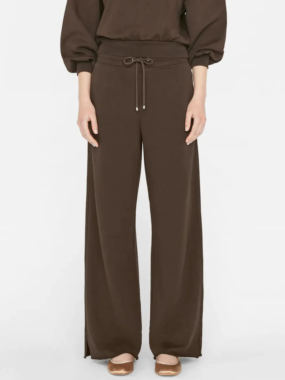 Elevated sweatpants with an elastic drawstring waist, relaxed leg and raw hems with peekaboo side slits.