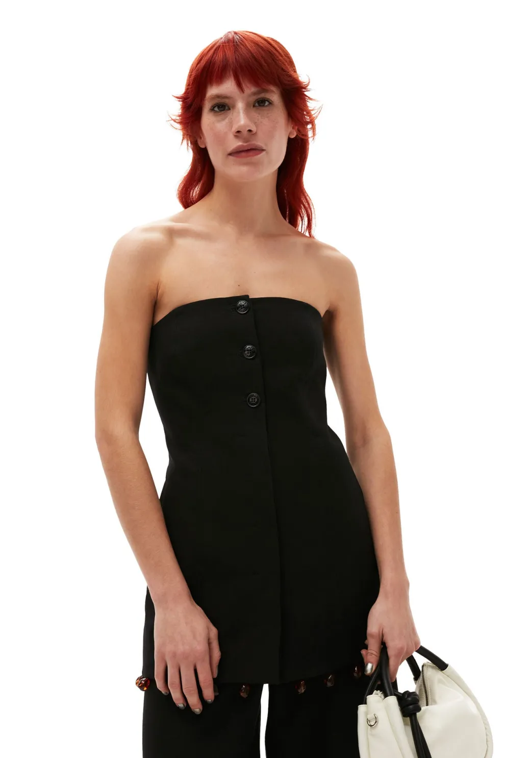 This cotton sleeveless top is made from organic cotton. The top is designed for a slim fit and features a button closure, decorative pockets and beaded details.