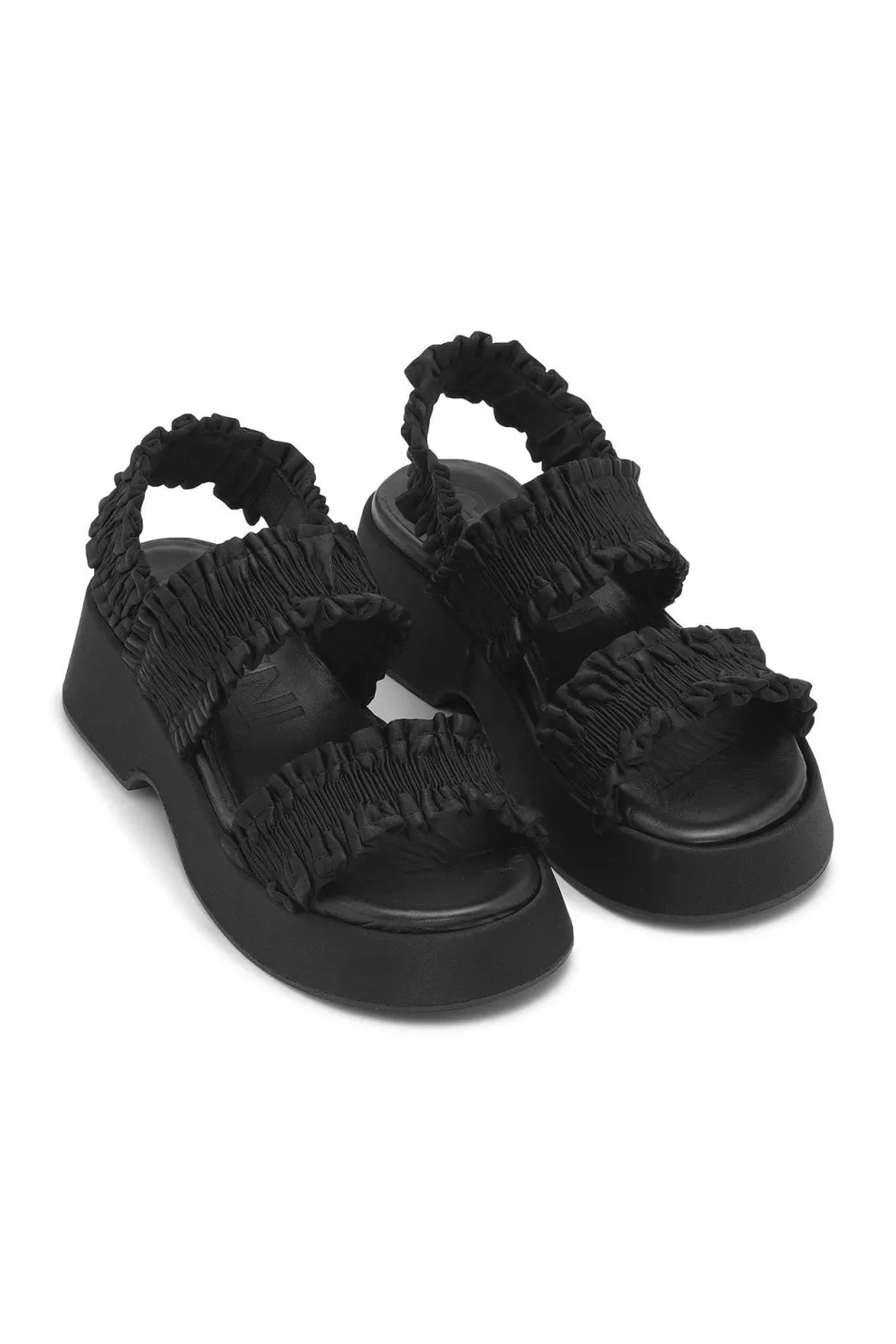 These Smock Flatform sandals are made from a certified recycled polyester blend. The sandals feature a flat sole, elastic back strap and smocked straps.