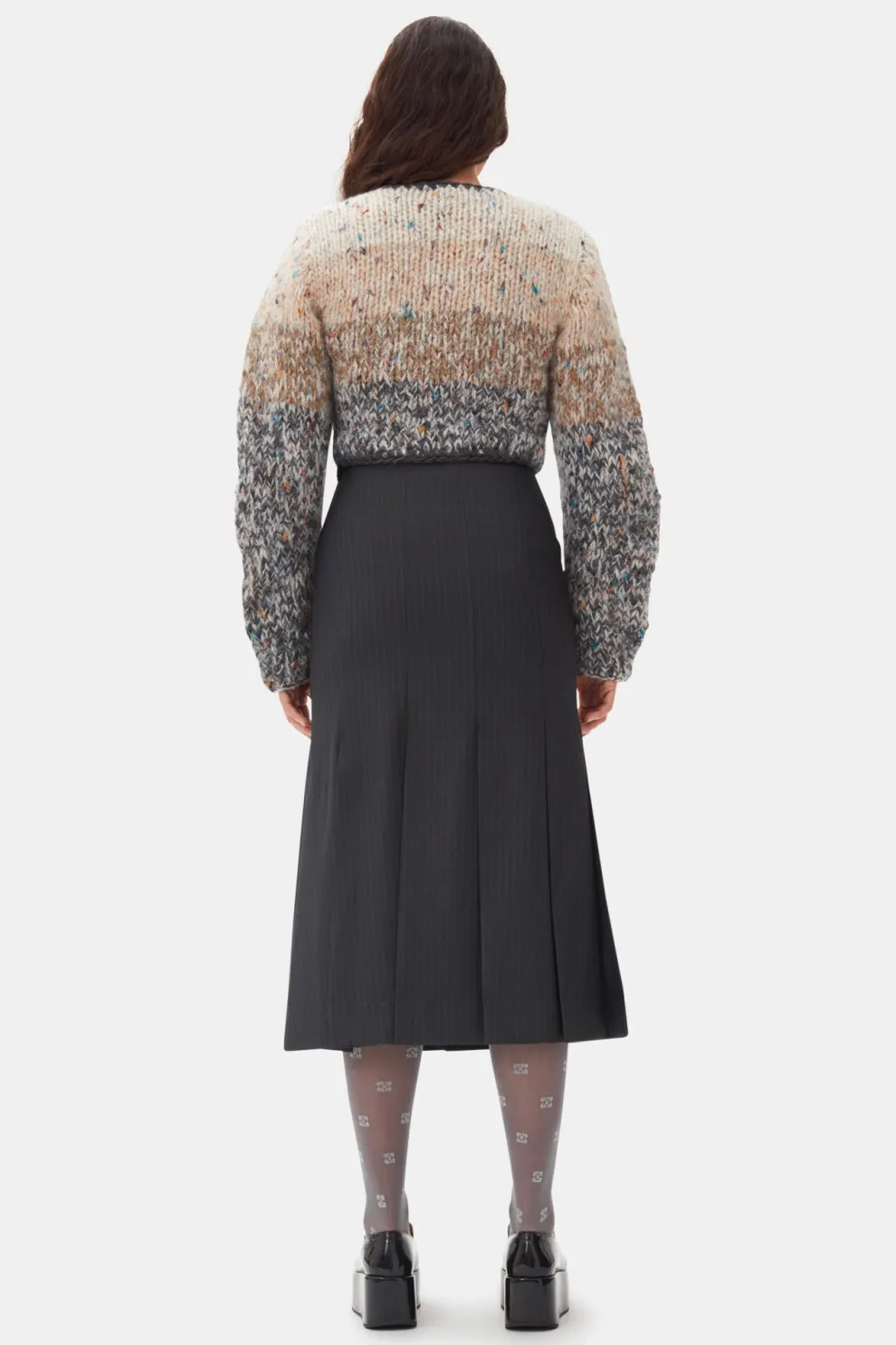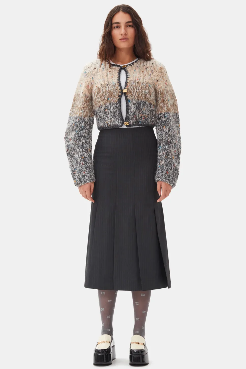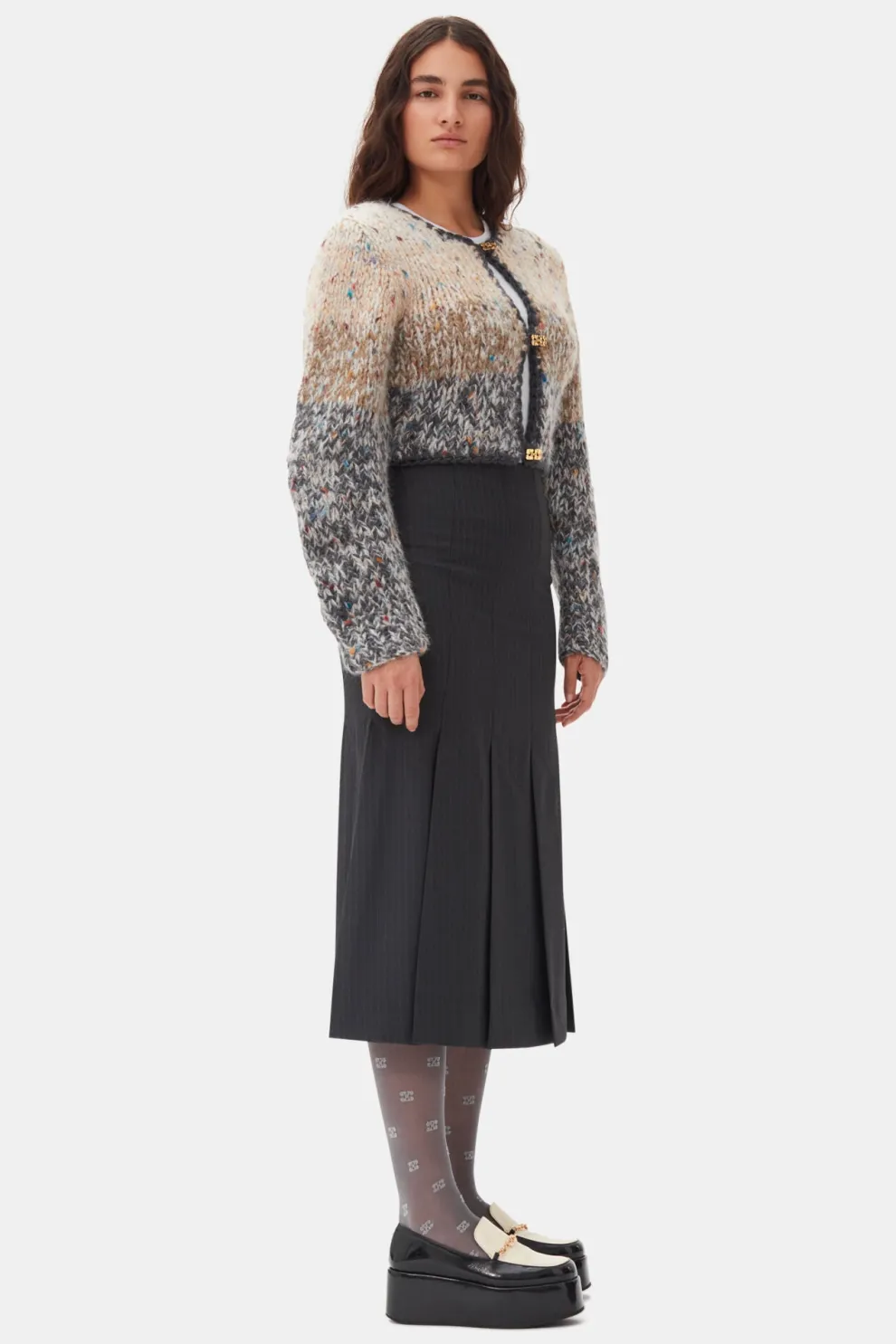 Ce cardigan court tricoté à la main présente un décolleté en V et une fermeture à boutons sur le devant avec des boutons papillon GANNI. Il est doté de bords côtelés et d’un logo GANNI brodé.