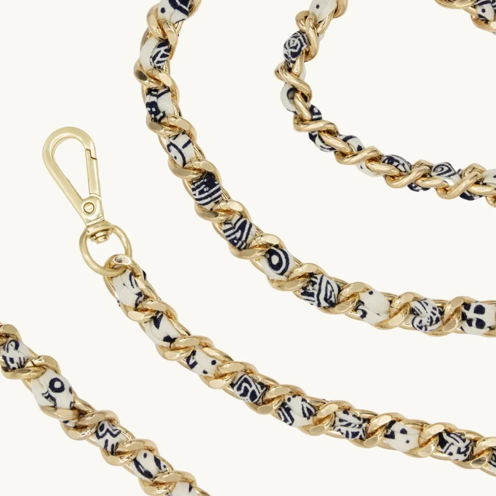 La bandoulière BONNIE, tressée avec une chaîne dorée et un bandana à l’intérieur est parfaite pour ajouter une touche de couleur à vos tenues. La chaîne présente une longueur de 120 cm (mousquetons inclus).