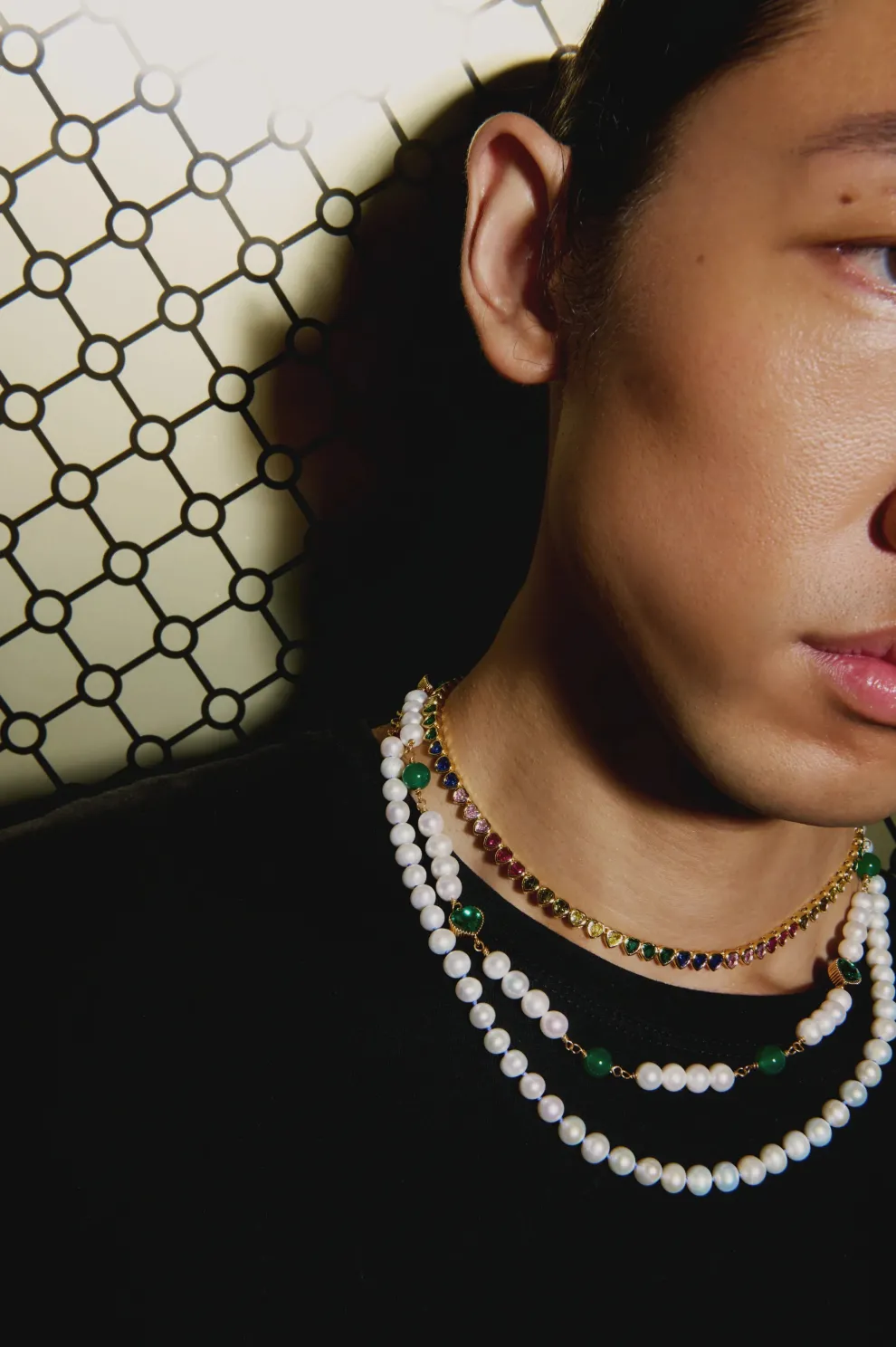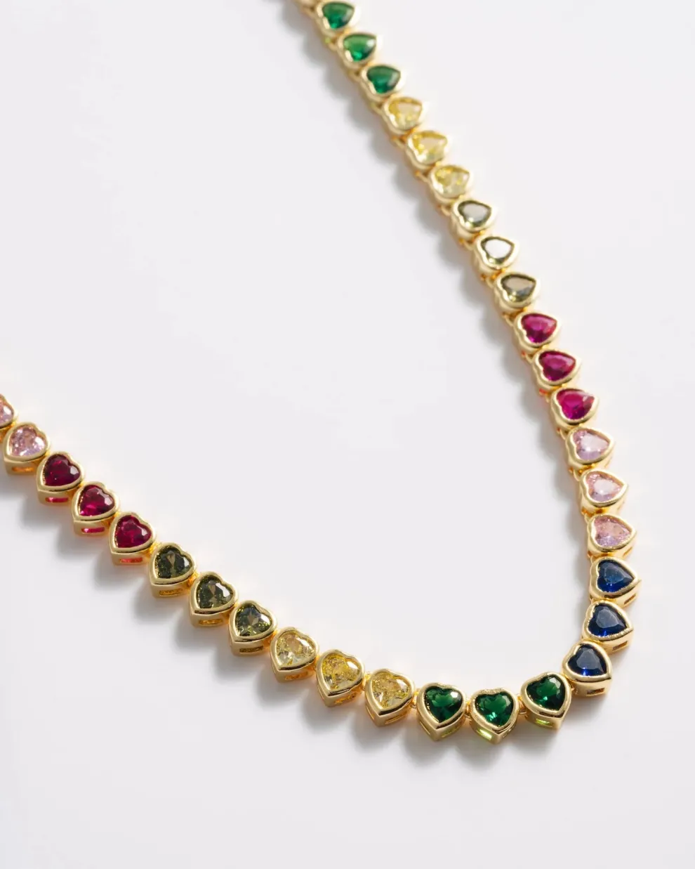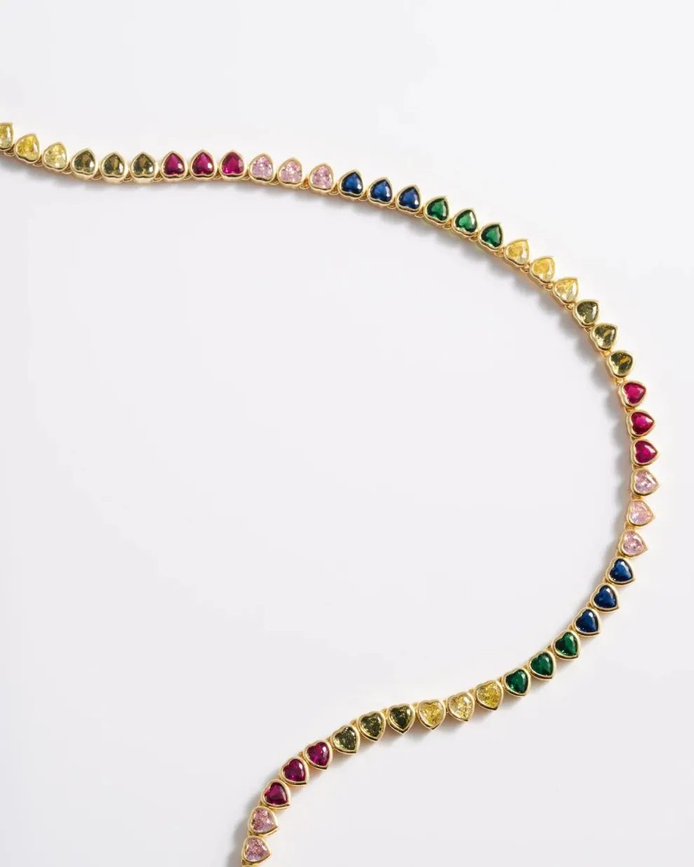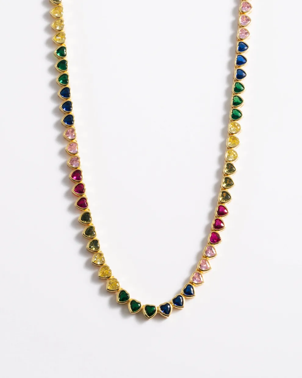 Collier tennis multicolore avec pendentifs cœur.