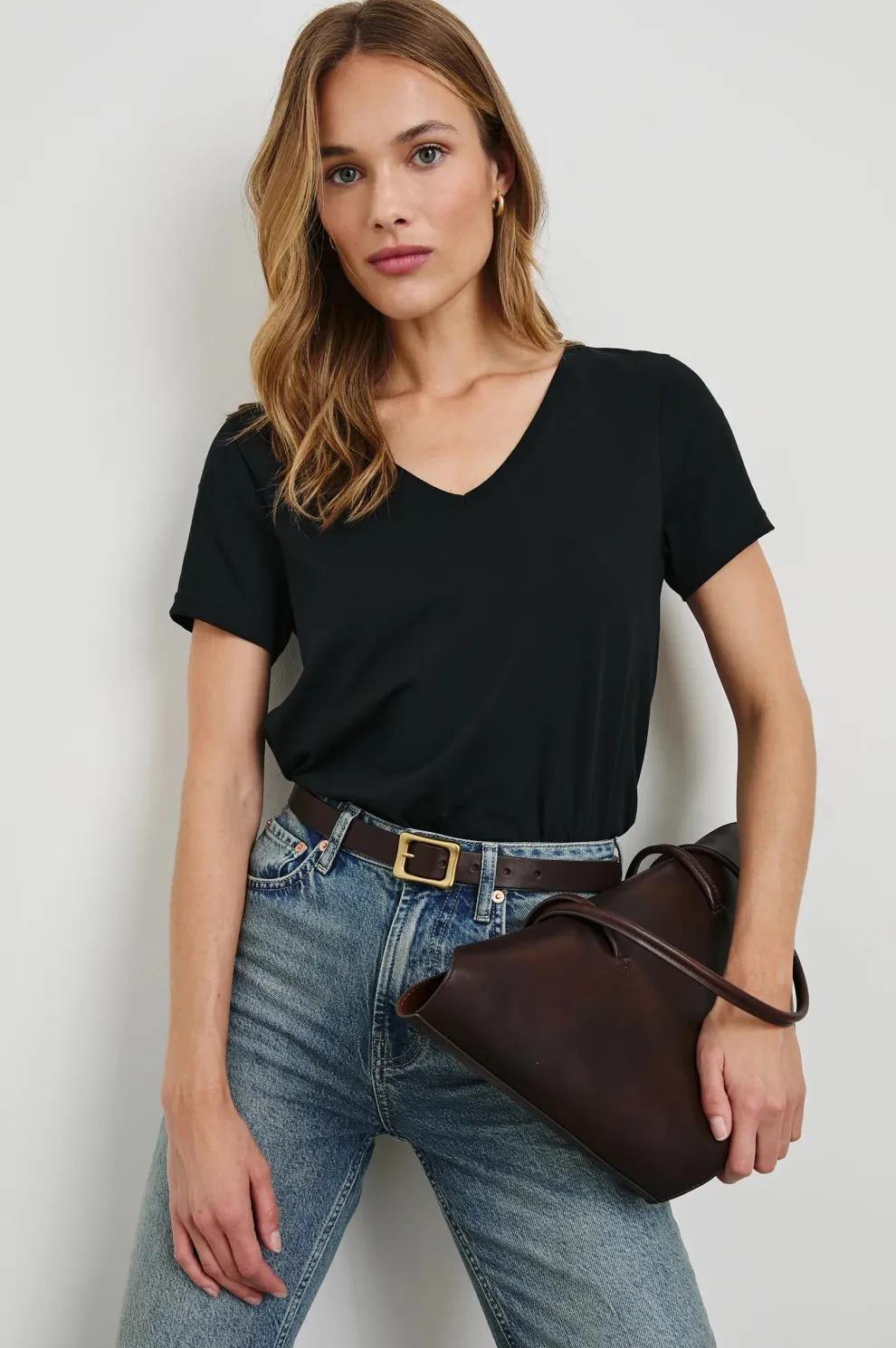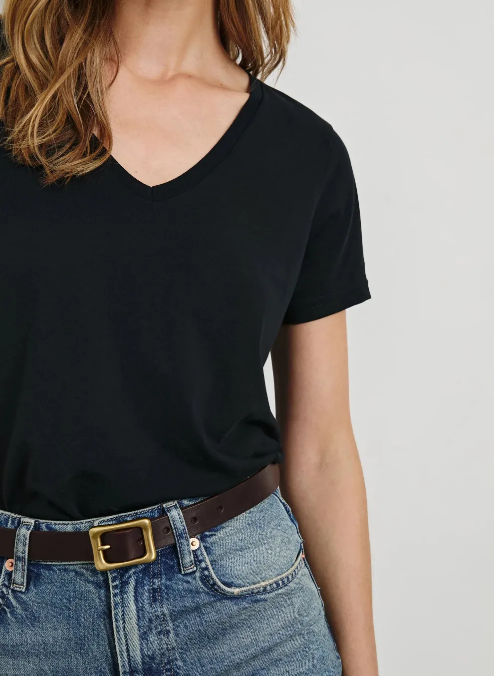 Arrêtez de chercher, vous avez trouvé votre t-shirt pour toujours. Conçu en coton Pima ultra-doux avec une coupe décontractée, le Classic V-Neck est un essentiel à porter toute l’année. Associez-le à une jupe élégante ou à votre denim préféré pour un look à la fois décontracté et raffiné.