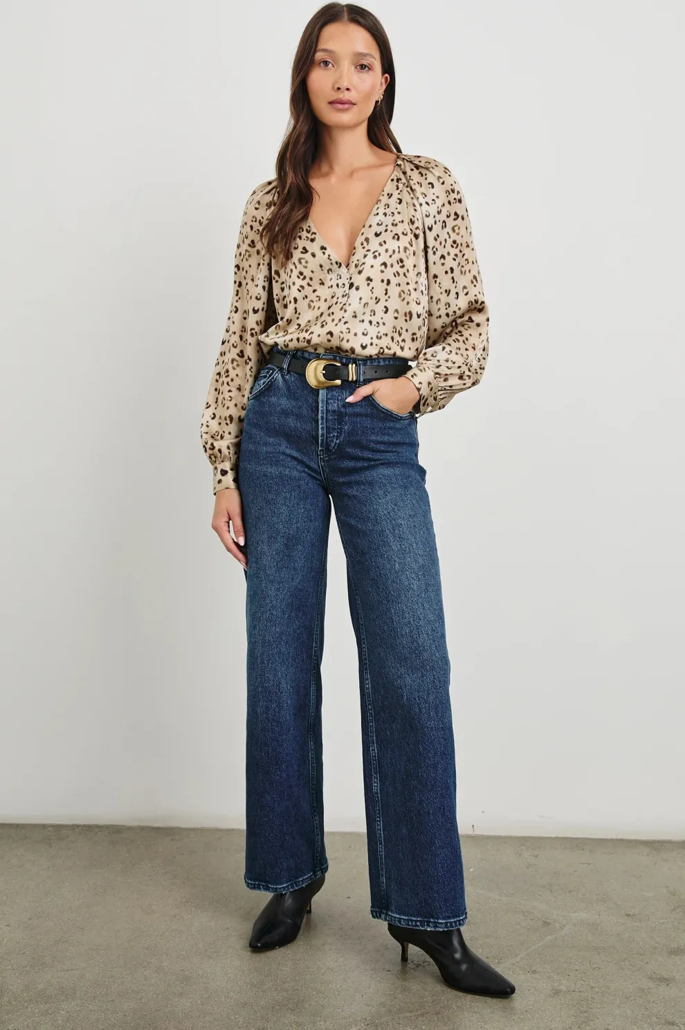 Libérez votre côté sauvage avec la Sandra, une blouse à faux enveloppement qui met en valeur toutes les courbes. Conçue en satin crêpe lisse avec une subtile manche peplum et un corps fluide, elle est approuvée pour passer du travail au week-end.