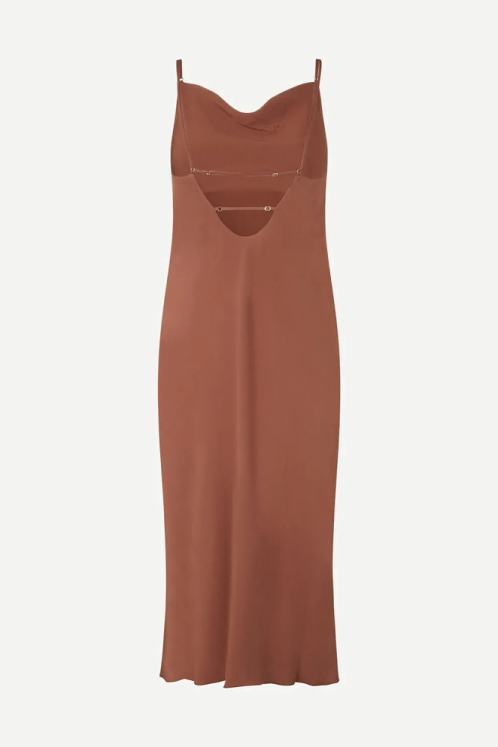 Fitted midi dress with adjustable straps featuring a straight front neckline and a low back. Double strap at the back.
