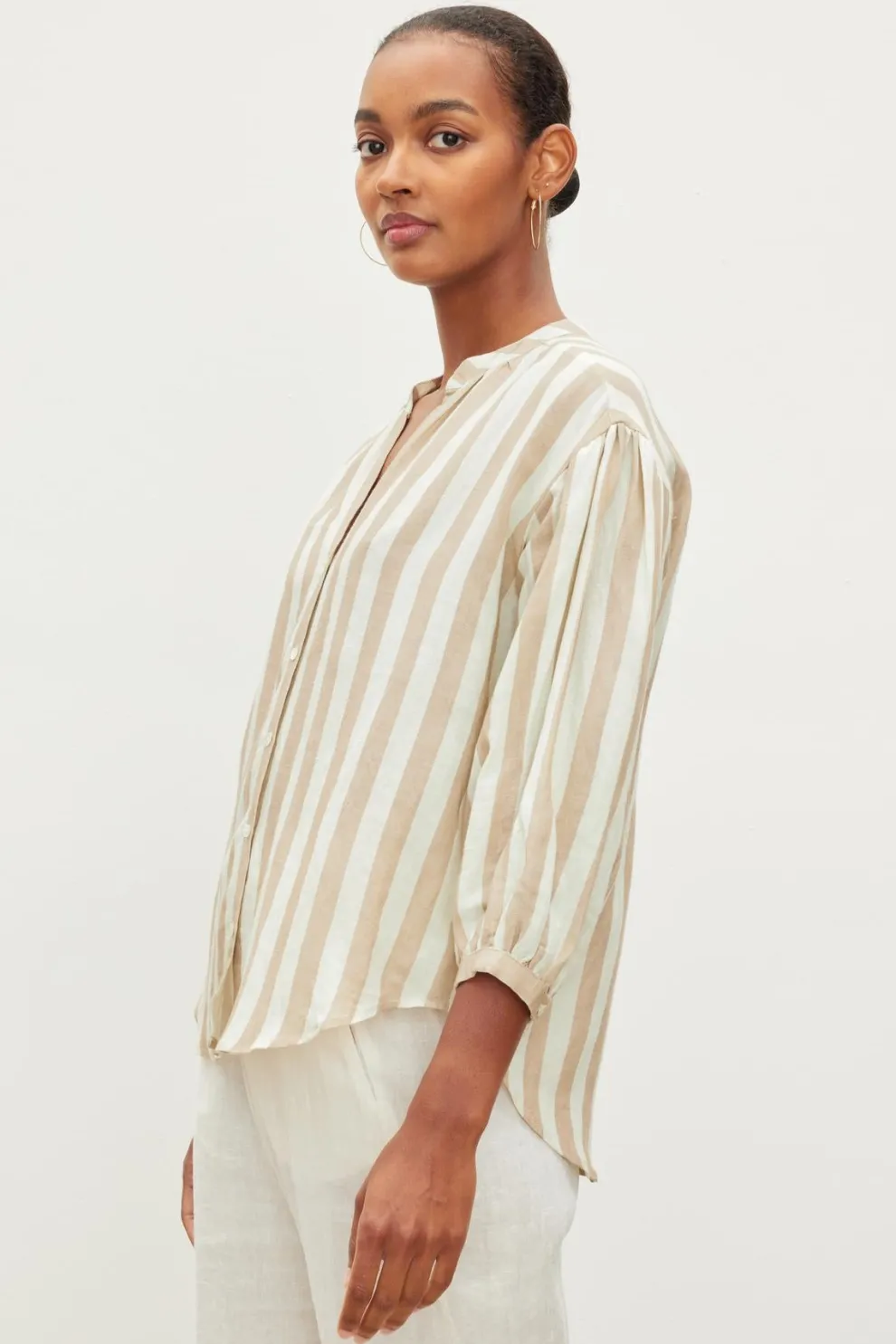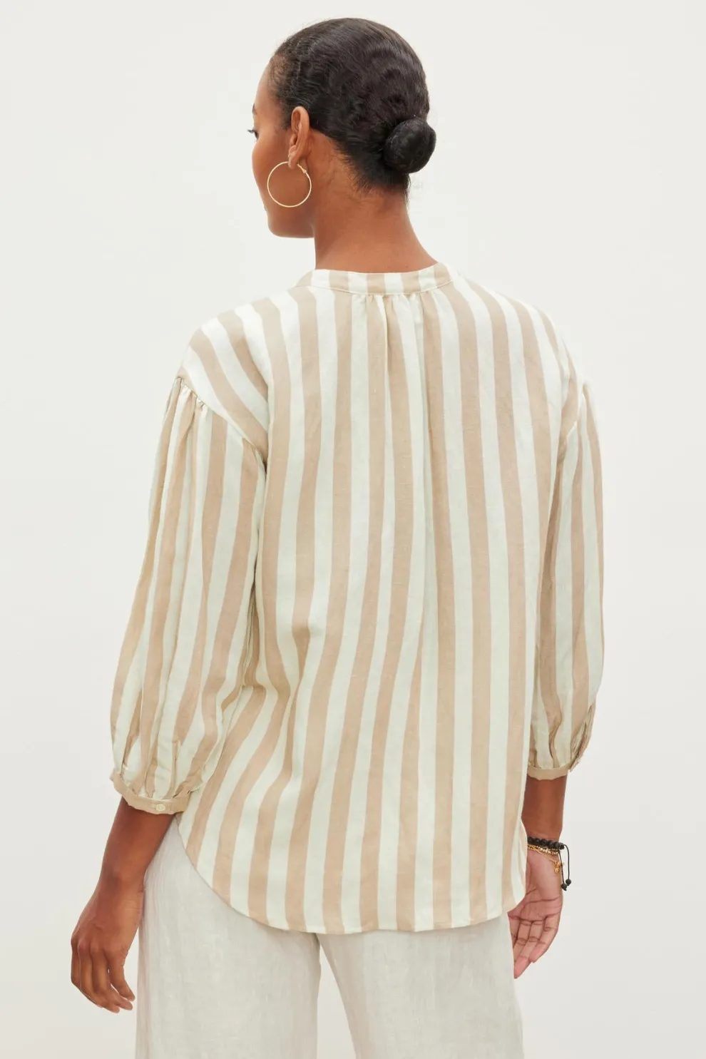 Le chemisier Gabby est fait de lin léger. Il possède une encolure en V et un ourlet arrondi.