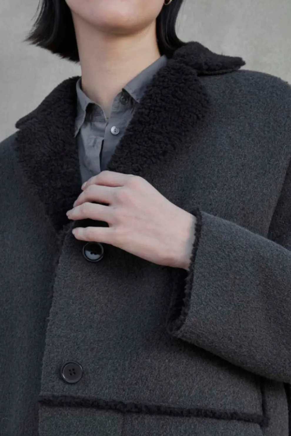 Ce manteau allie style et confort avec sa fermeture à boutons, son col classique et ses poches plaquées sur les coutures latérales. Doublé d’un intérieur en fausse sherpa et doté de finitions assorties, il offre chaleur et élégance pour les journées fraîches.