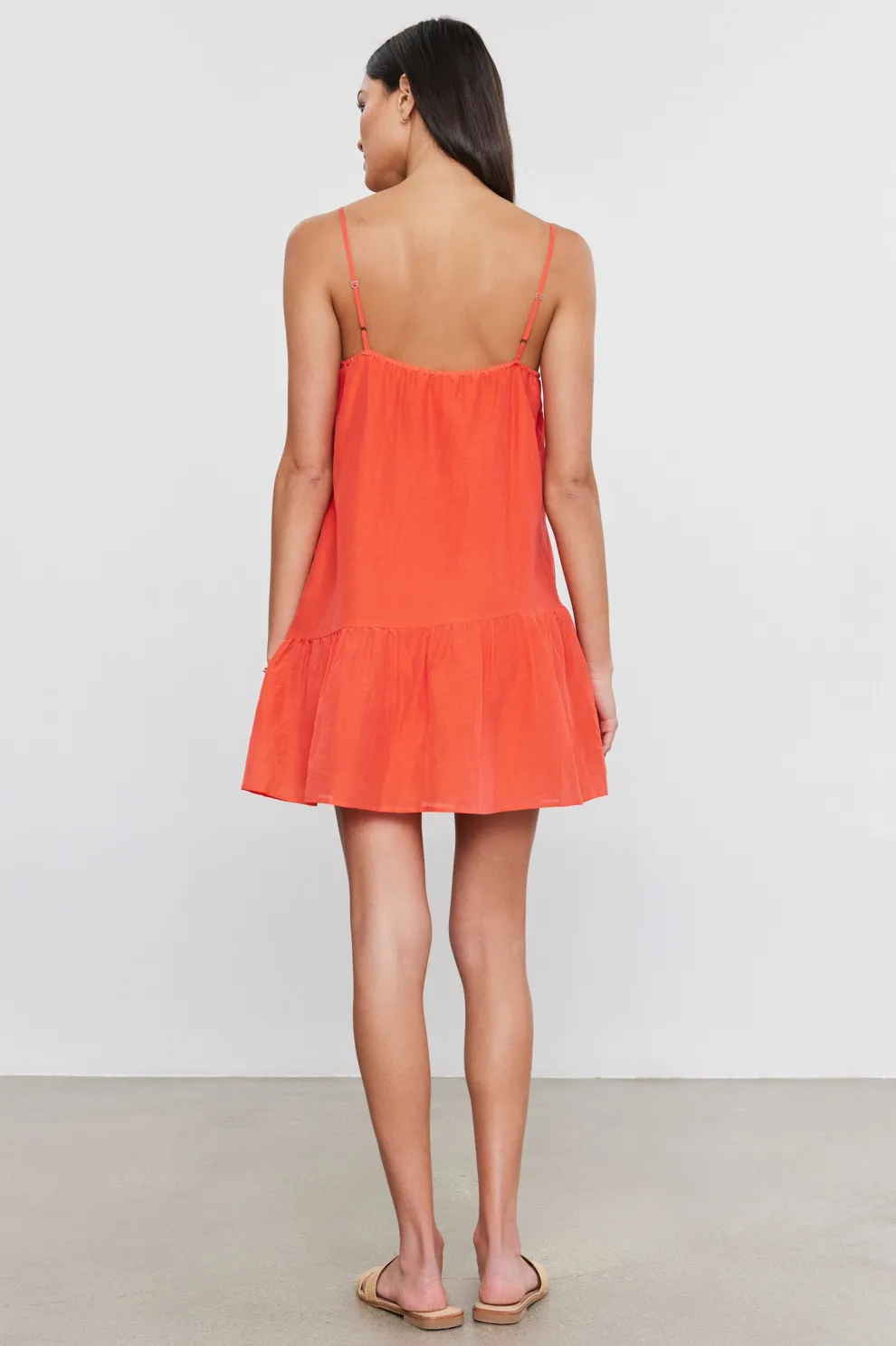 La robe Suzie est dotée de bretelles fines ajustables, d’une longueur mini, ainsi que d’une ourlet au bas de la robe lui donnant un léger volume.